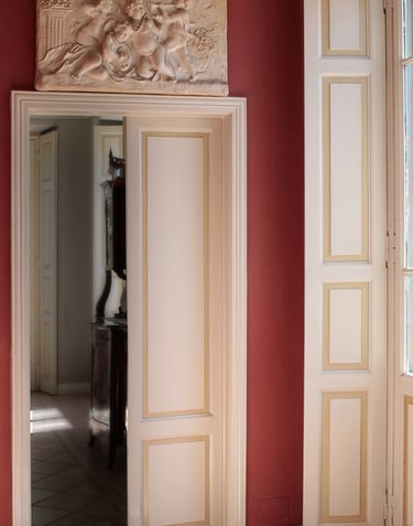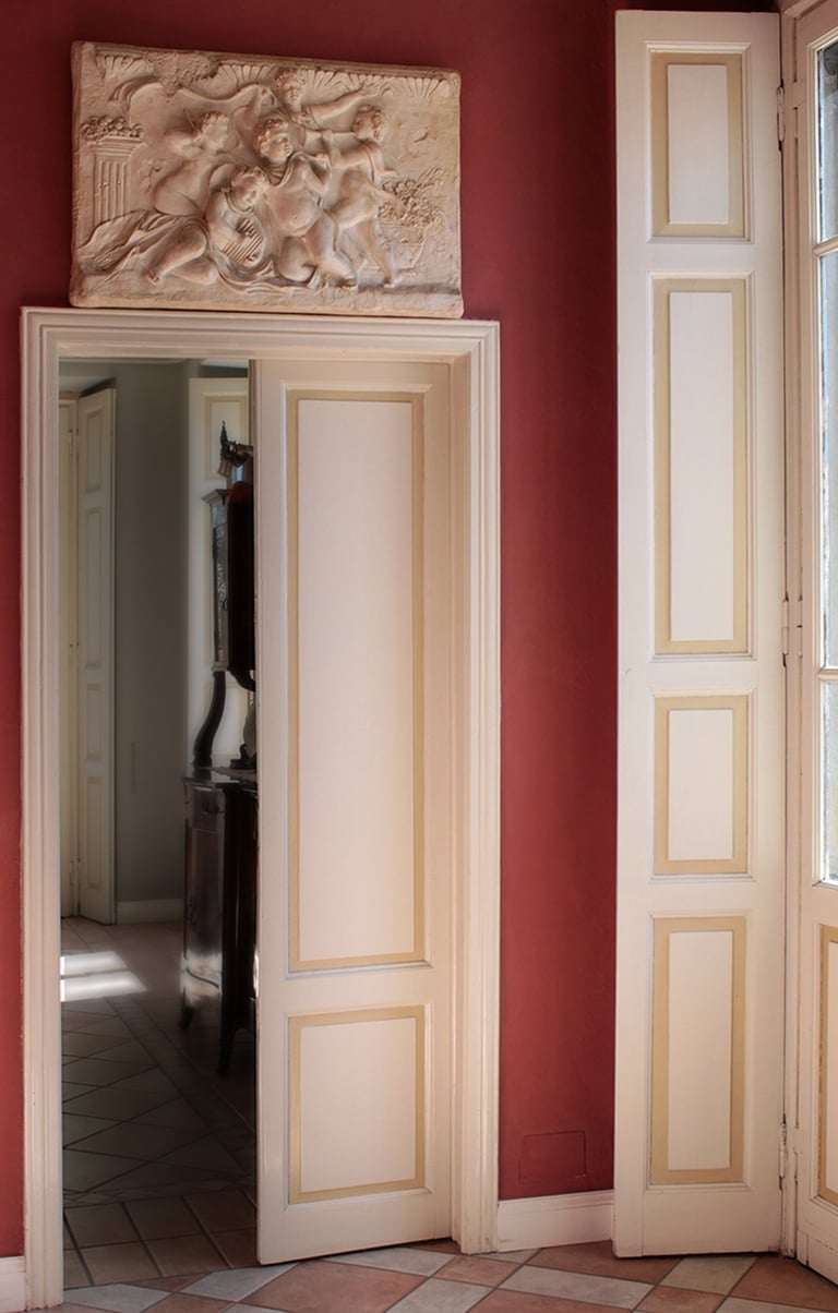 The interiors of Villa Lucini have recently been restored to their original decor after various uses—accumulated over time—had partially erased their historical features.