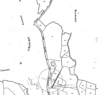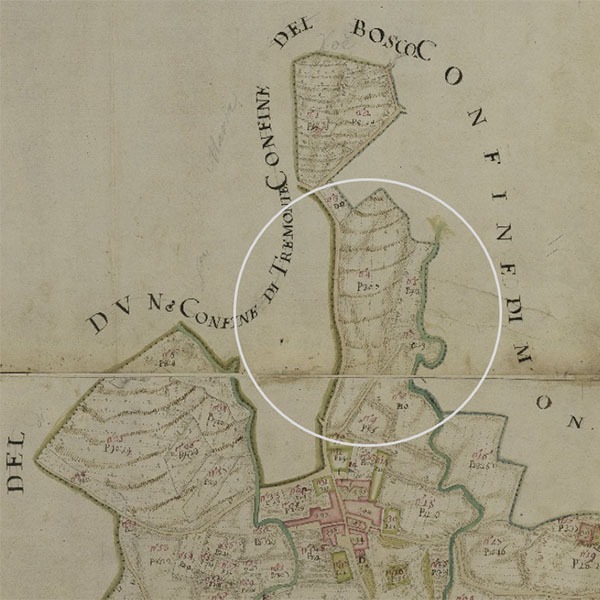Among the properties acquired by the widow Boselli was the land historically described in the old land registry as “Ronco dello Rogolone”, which today corresponds to the grounds containing Villa Lucini, the Cottage, and the Belvedere.