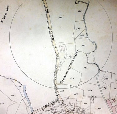 This land corresponds to the wooded hillside and flat meadow in the northern part of the park surrounding today’s Villa Lucini (parcel 177).