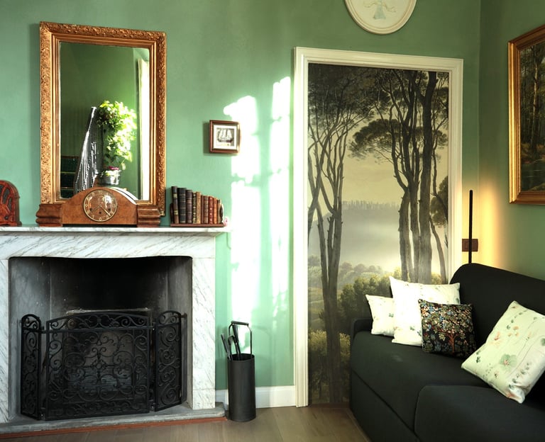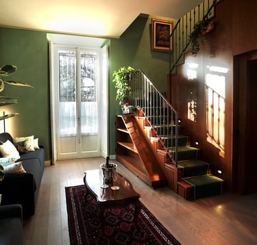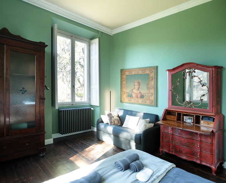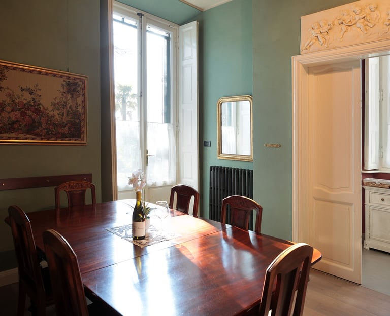 Close to Lake Como and Milan, a three-room apartment in the historic 19th-century residence Villa Lucini 1886, a stunning south-facing apartment overlooking the large private enclosed park located within the Regional Park.