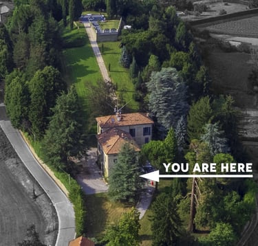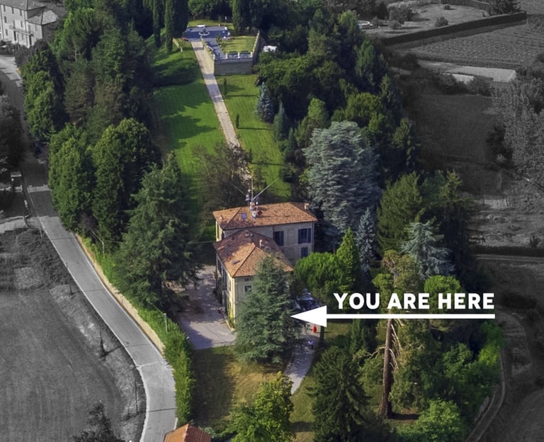 The villa sits at the foot of the Brianza hills (also known as San Genesio), next to the natural Molgora stream and surrounded by picturesque trails.